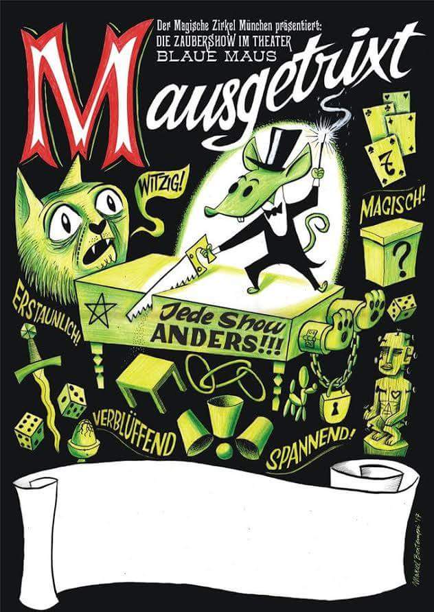 Tipp: Ab Herbst 2017 gibt es in München eine neue Reihe von Zauberabenden mit wechselnden Zauberkünstlern – Mausgetrixt im Theater Blaue Maus.