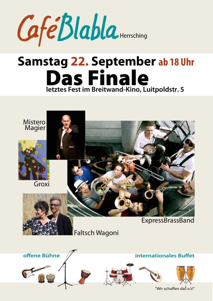 Am 22.9. tritt Mistero zusammen mit fantastischen Künstlerinnen und Künstlern unterschiedlichster Richtungen beim Abschiedsfest aus der alten Location des Café BlaBla in Herrsching auf.